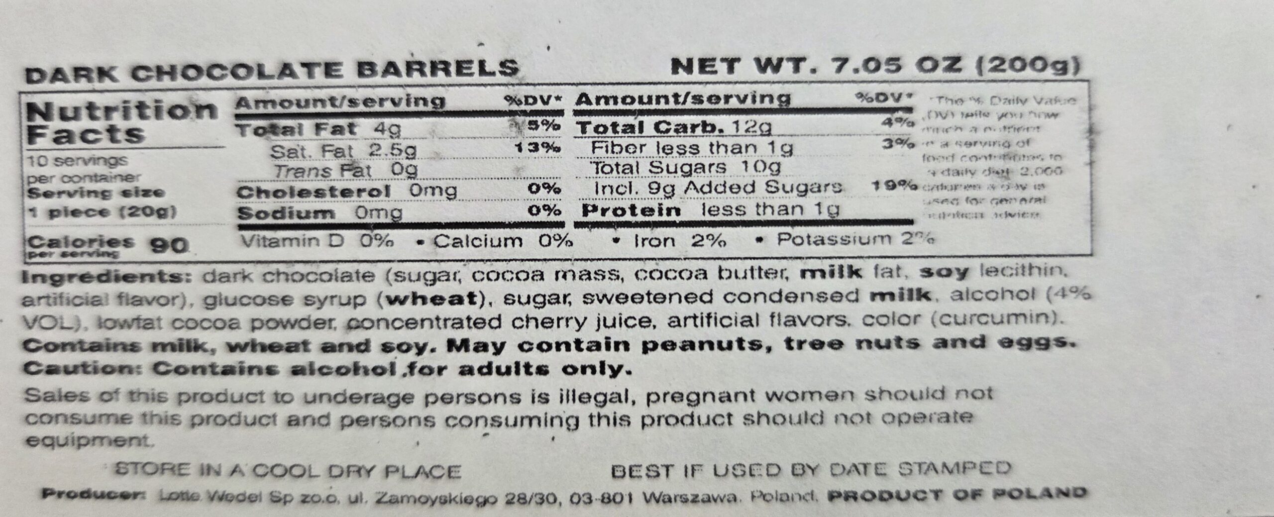 E.WEDEL Barylki Dark Chocolate Barrels Alcoholic Filling