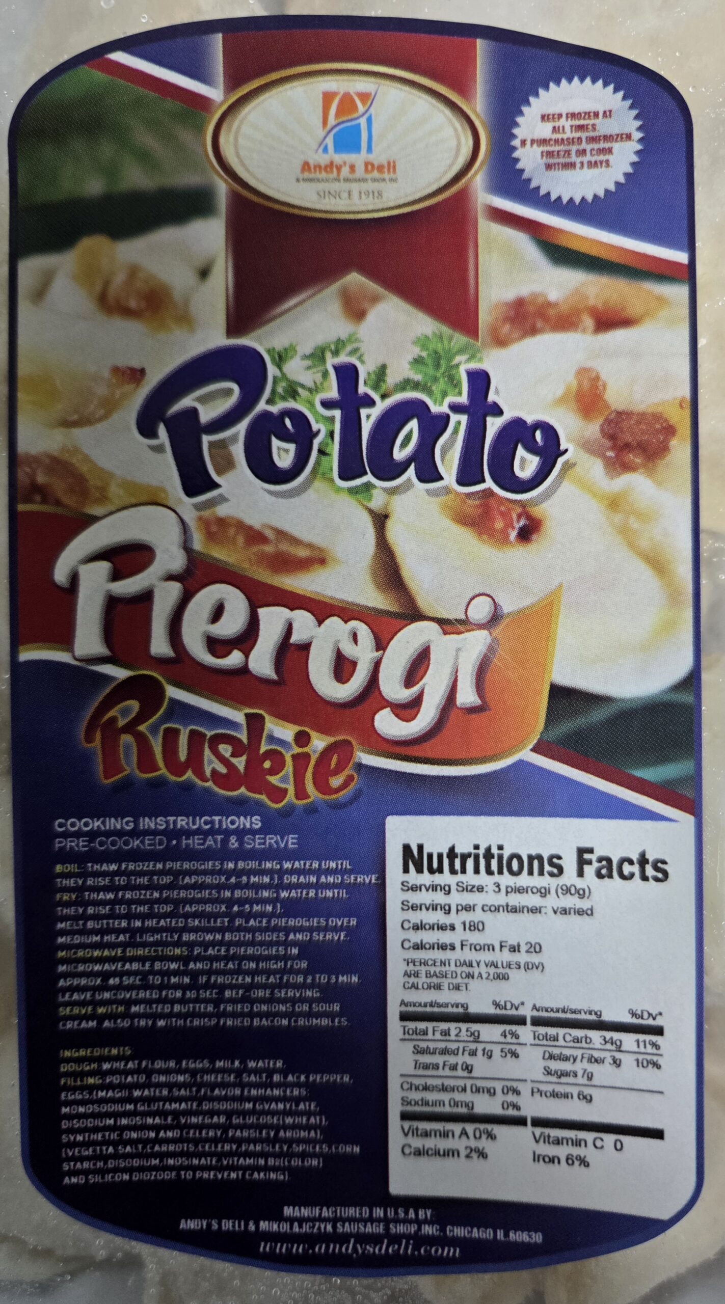 Pierogi are shipped in container of 14oz 397g. They are pre-frozen. ANDY’S DELI IS NOT RESPONSIBLE FOR ANY DURING TRANSIT INCLUDING PRODUCT GOING BAD OR THAWING. By ordering customer agrees to those terms. Buy pierogi online